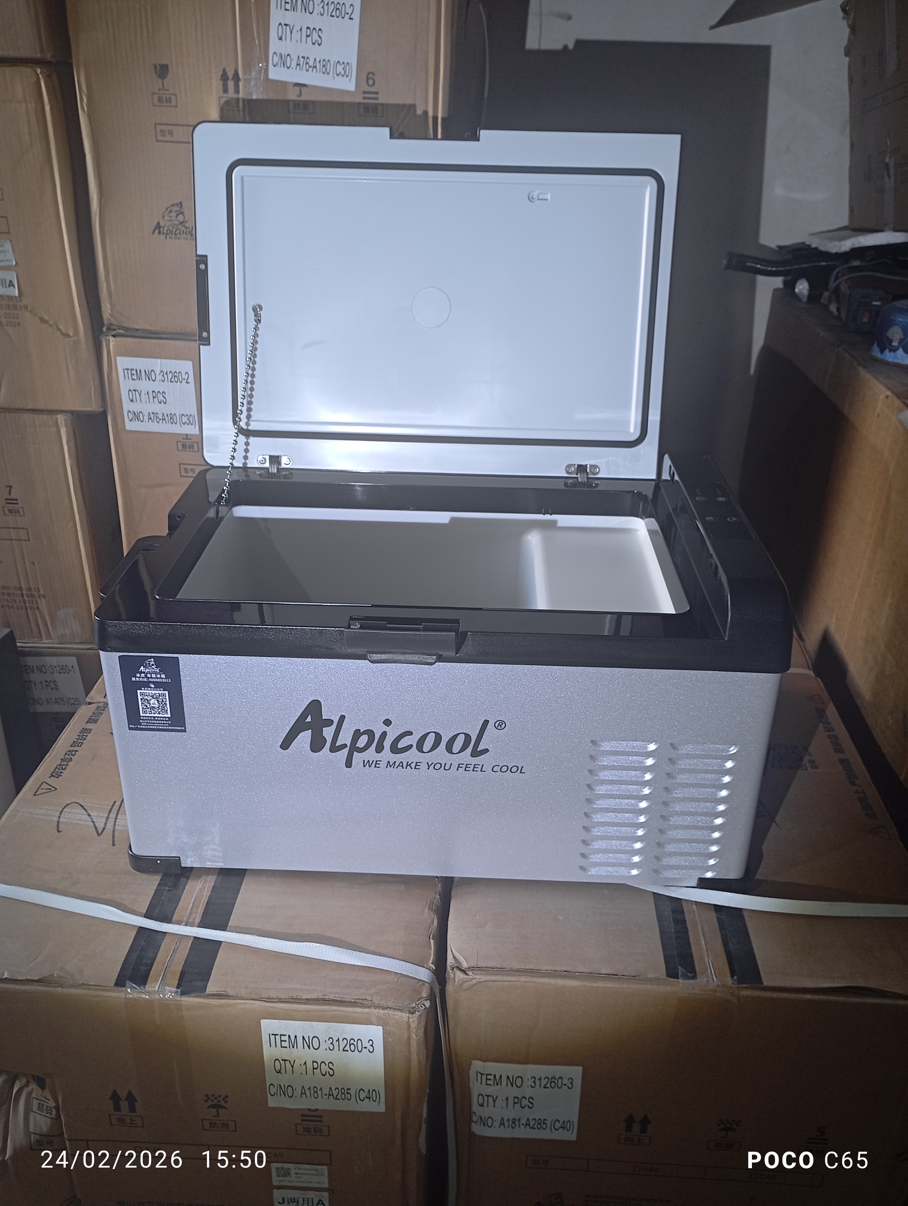 یخچال آلپیکول ۴۰لیتری دما از منفی 18درجه الی 10درجه هم یخچال هم فریزر به تلفن همراه هم وصل میشود با برق 12ولت 24ولت و220ولت کار می کند آداپتور دارد